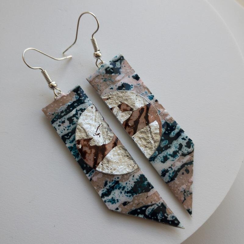 As these earrings are one-of-a-kind, each pair in this style has its own unique texture and brushstrokes,  clearly showing the maker's hand.