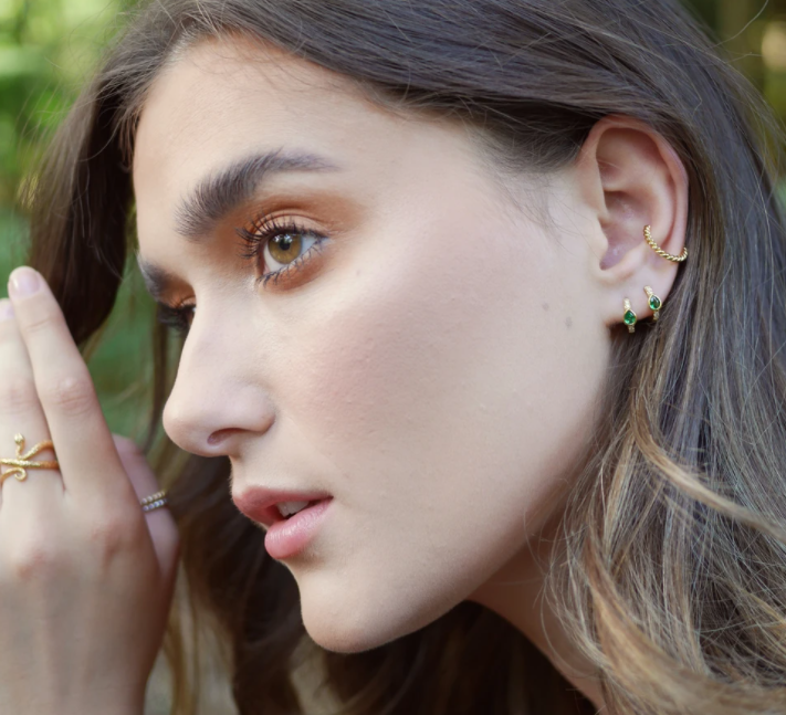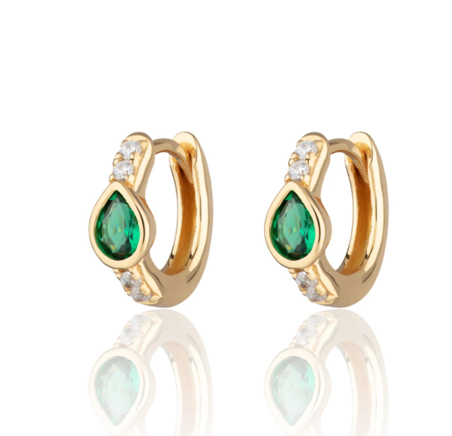 Inspired by Cleopatra's love of green stones, the delicate teardrop shape of these huggies offers a vintage romantic feel and has been faceted to catch the light as you move. Crafted from sterling silver with the option of 18ct gold plated these teardrop hoops are a great way to add a pop of colour to your demi-fine jewellery collection.