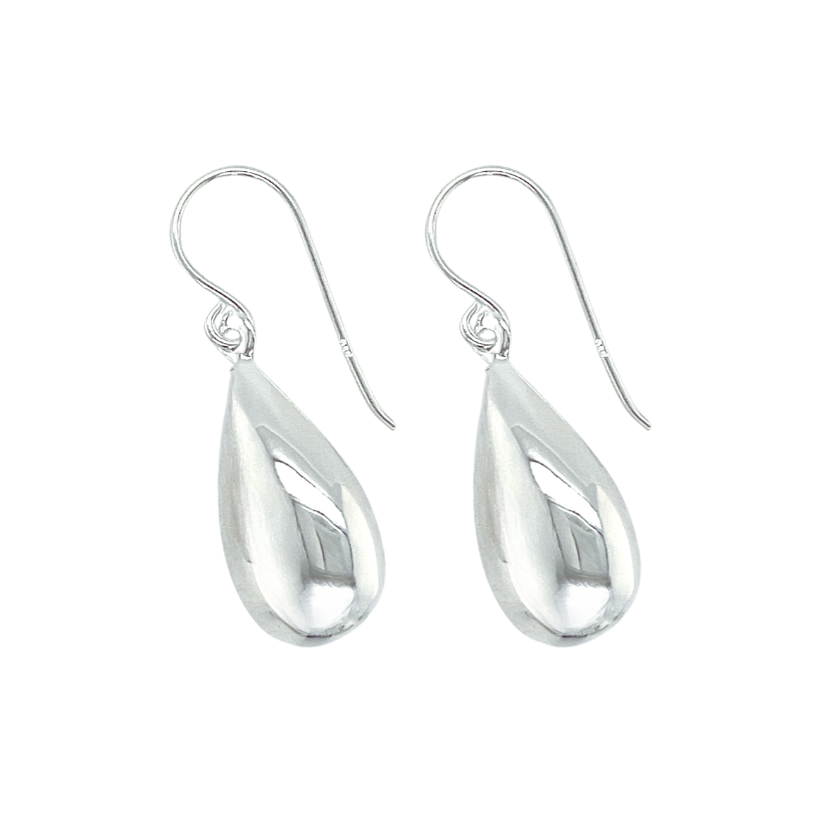 We love these chunky Droplet Earrings. From our own new collection, the silver and gold plated drops are the perfect earrings to give a nod to the current trend for solid and plain metals while remaining timeless. They have a solid look and feel but are light and easy to wear.