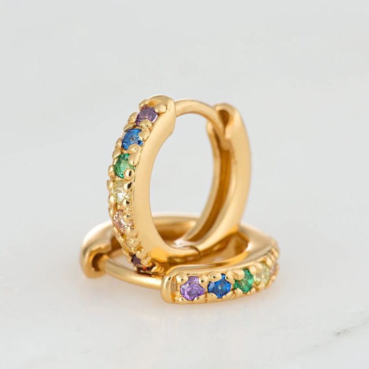 Huggie Hoop Earrings with Rainbow Stones