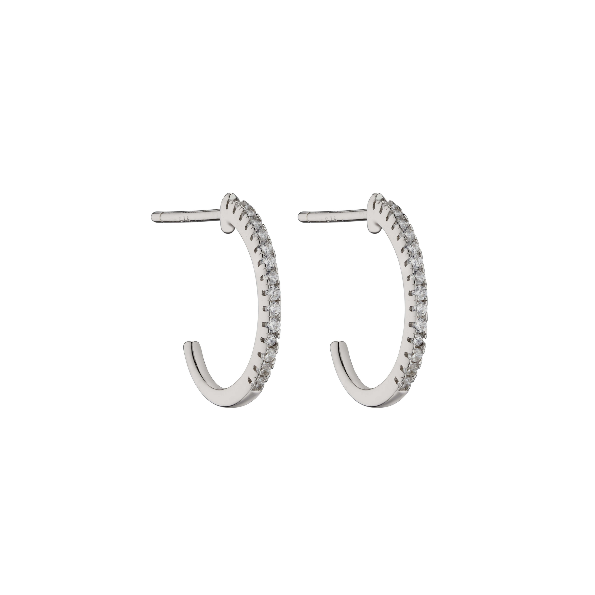Perfect for stacking on the ear with other earrings, these small 12mm open hoop earrings are so versatile. Crafted in sterling silver with a rhodium plating, and featuring cubic zirconia stones, these earrings are wonderful for adding a little sparkle to your outfit!