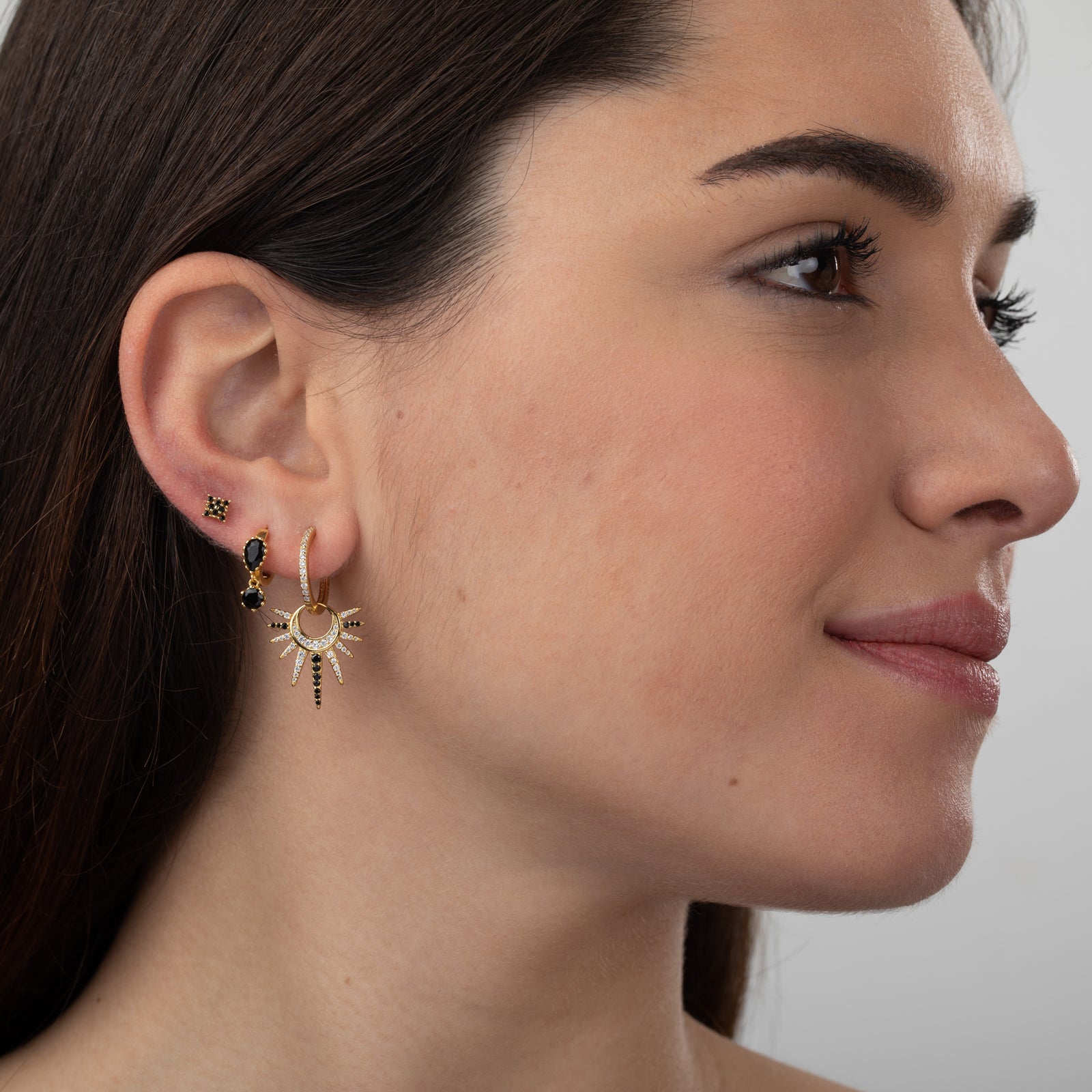 Beautiful hoop earrings with an eye-catching sun charm attached, the charm can be removed leaving you with a perfect pair of cubic zirconia hoops.