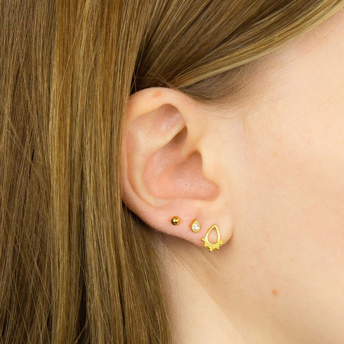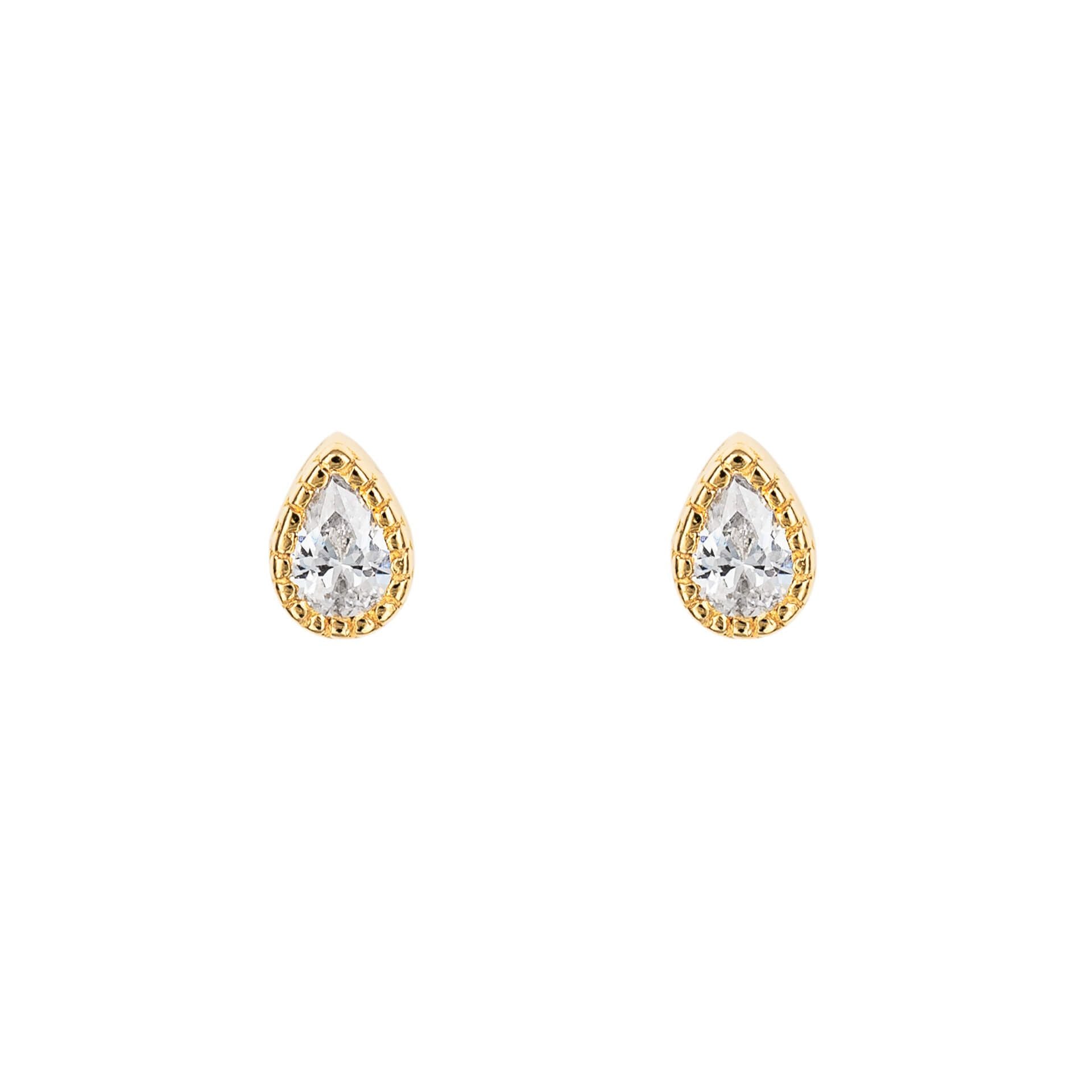 With the perfect amount of elegant sparkle, these small teardrop stud earrings are ideal for creating stacked styles on the ear. Crafted in recycled sterling silver, these earrings feature beautiful bezel set cubic zirconia stones.