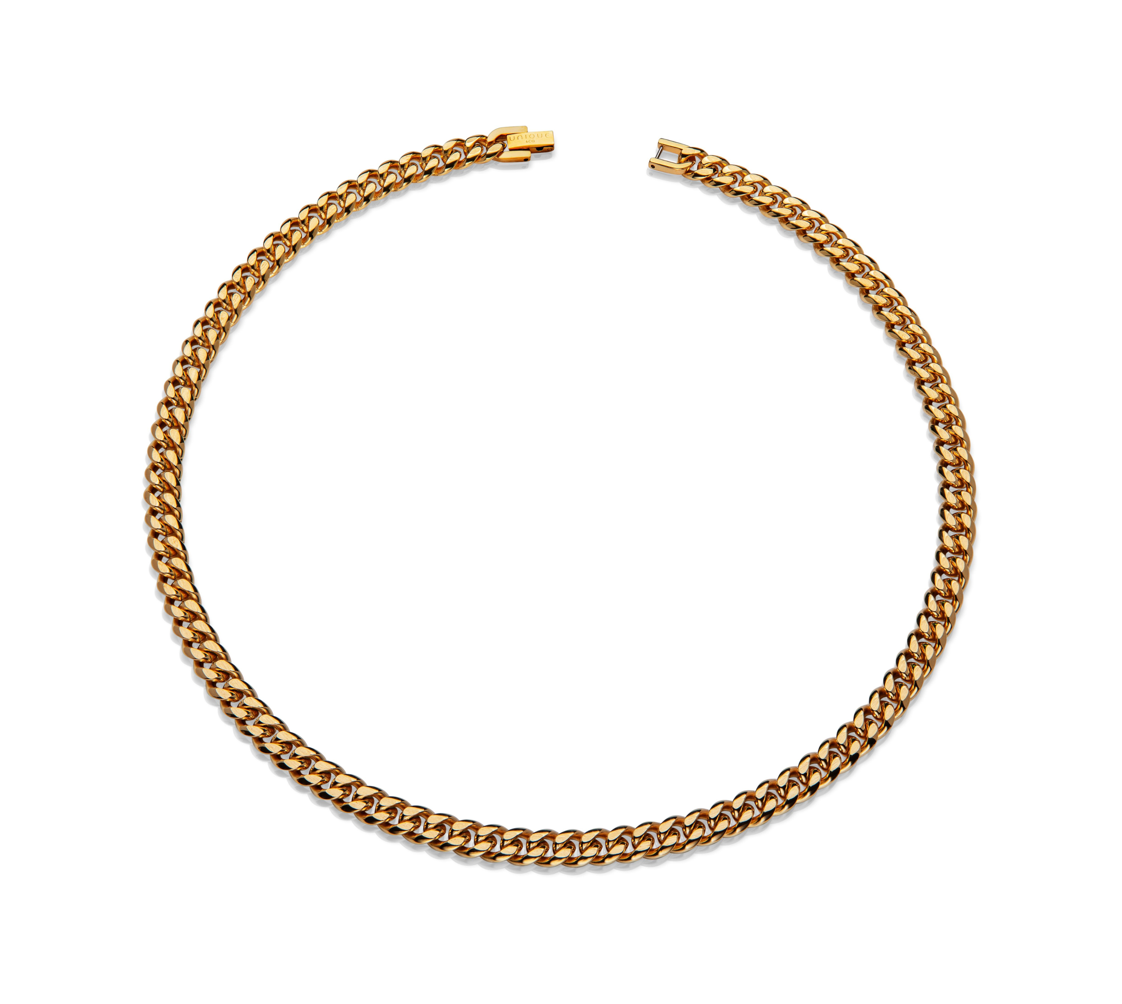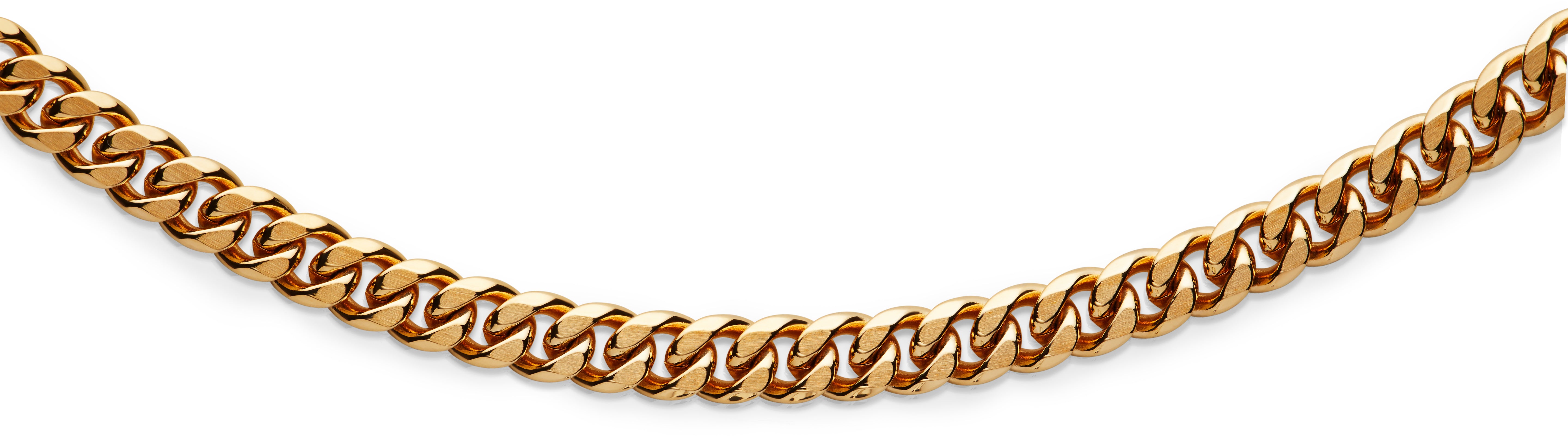 Stainless steel medium width curb necklace with a polished yellow gold IP plating. Sturdy and strong with an excellent durable plating. The plating is hypoallergenic and lasts longer than other forms of plating. Its also easy to maintain and clean with soapy water. Also available in wider and narrower versions.
