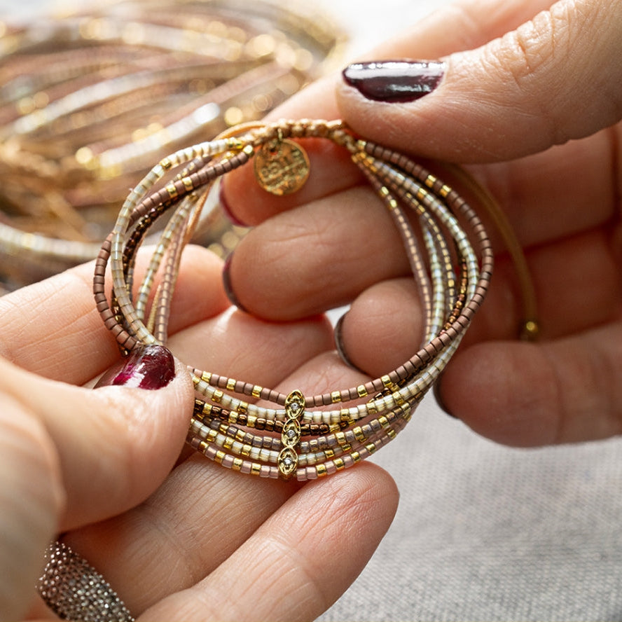 Belle Mais Pas Que blends traditional techniques with contemporary flair to create timeless, feminine pieces. Inspired by the sun-soaked beauty of the Mediterranean, each piece is designed and handcrafted in the South of France using premium materials like gold-plated brass, semi-precious stones, and vibrant threads. Their creations are enriched with carefully selected stones: turquoise, agate, amethyst, pyrite and hematite. We love their high level of finish and attention to detail.