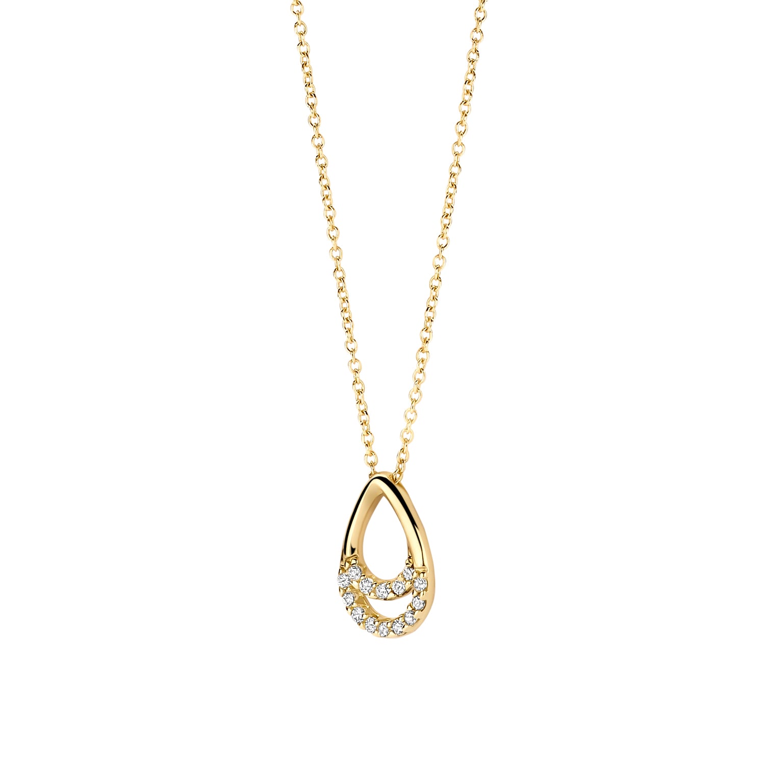 An exquisite 14ct yellow gold Blush necklace, featuring a teardrop pendant, meticulously pavé-set with brilliant cubic zirconia.