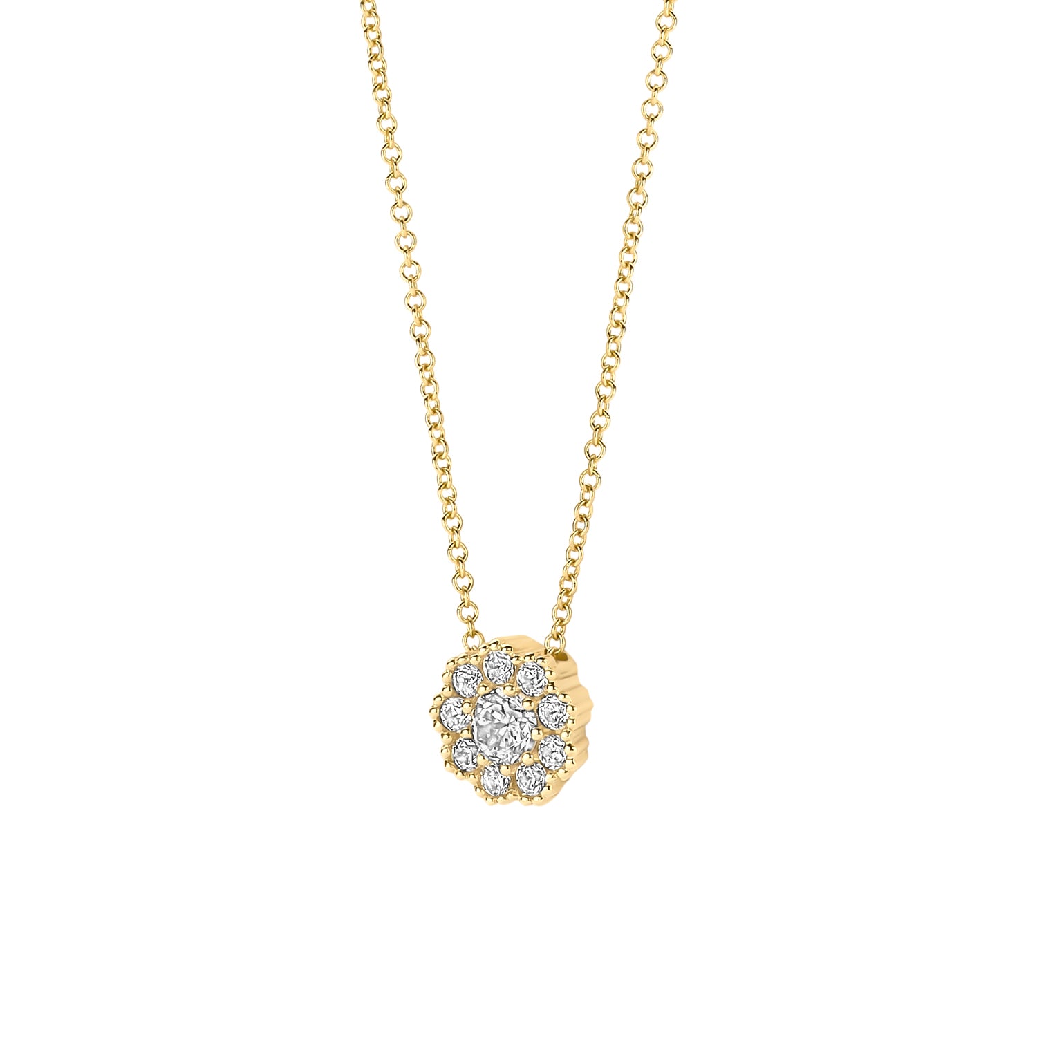 A timeless design, this Floral Blush pendant combines radiant cubic zirconia in an illusion setting.