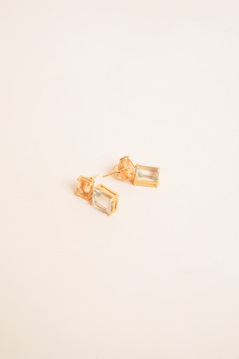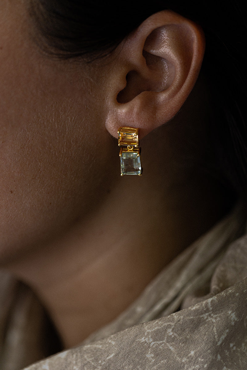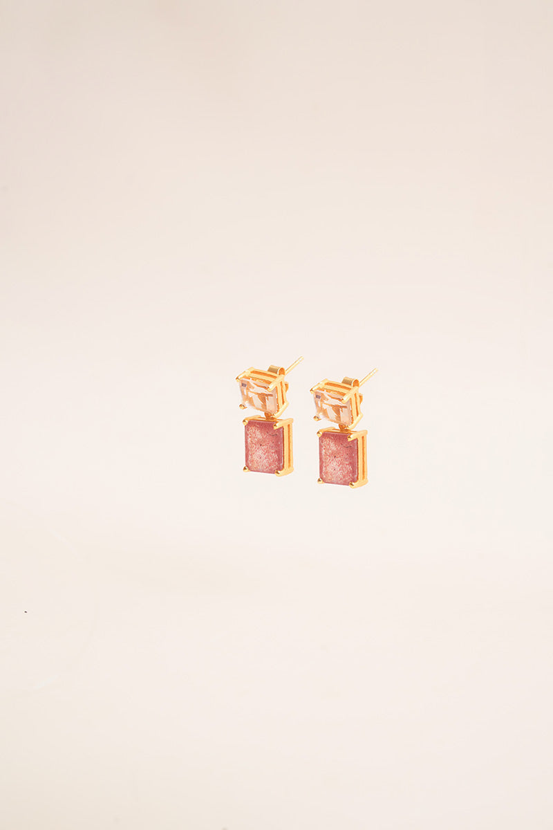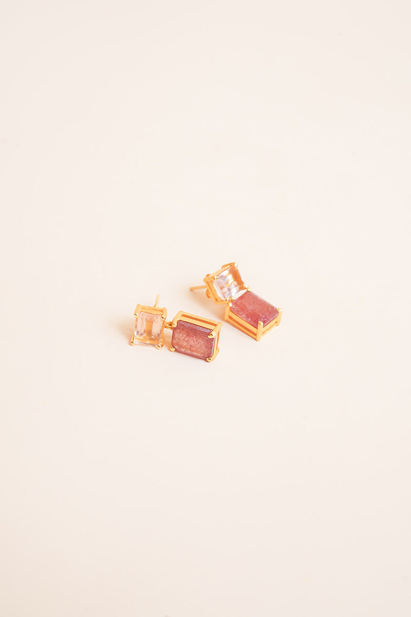 Beautiful natural stone earrings by ShanShan Paris. Available in 2 tonal options: a rose-hued Morganite/Strawbery Quartz or the cooler toned Citrine/Green Amethyst.