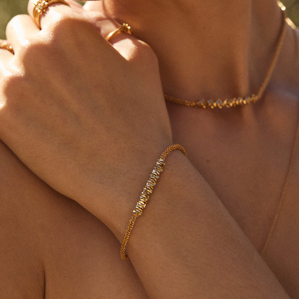 BDM Studio Paris Fragments Bracelet. 24ct gold-plated to ensure a long life. They contain no allergenic metals, only brass, copper, and gold. Matching necklace, earrings and ring in the same range also available.