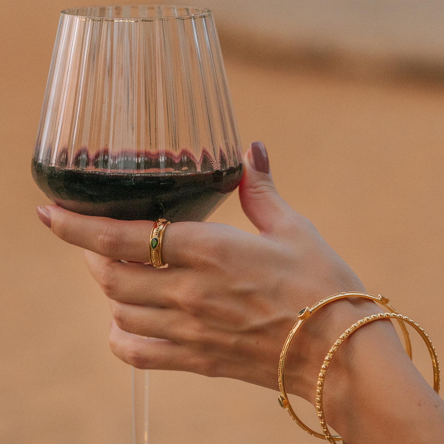 Inspired by Saraswati, goddess of knowledge and creativity, this gold-plated spinning ring features Chrome Diopside, the gemstone of growth, renewal, and connection. Its calming spinning band, inspired by Tibetan prayer wheels, aids focus and stress relief, while intricate rawa beadwork adds artisanal detail. A meaningful ring for creativity, balance, and personal transformation.