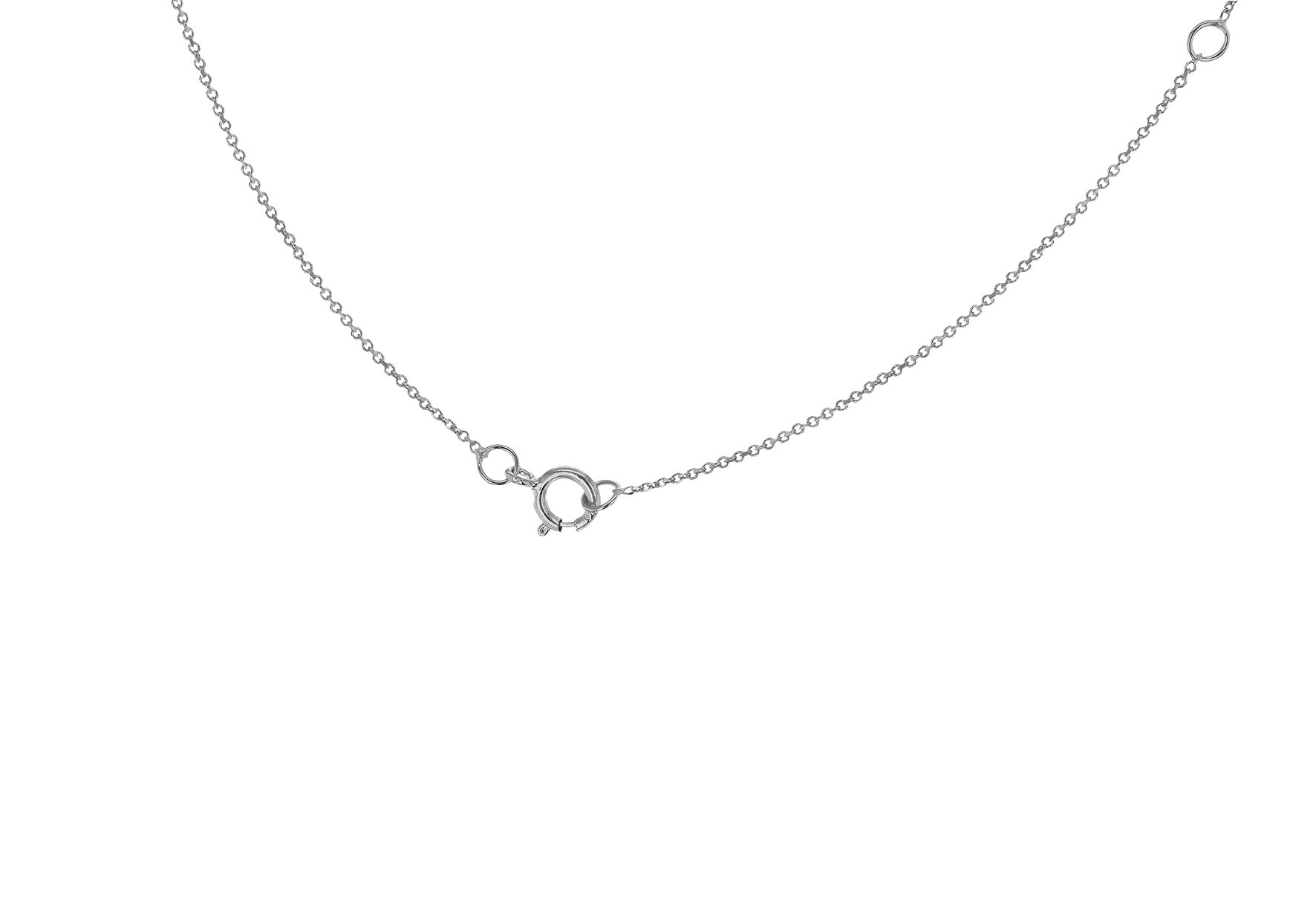 Sterling silver mini initial necklace, adjustable in length from 15-17inch making them perfect for layering with your other favorite chains. These delicate necklaces have a rhodium plating to protect against tarnishing.