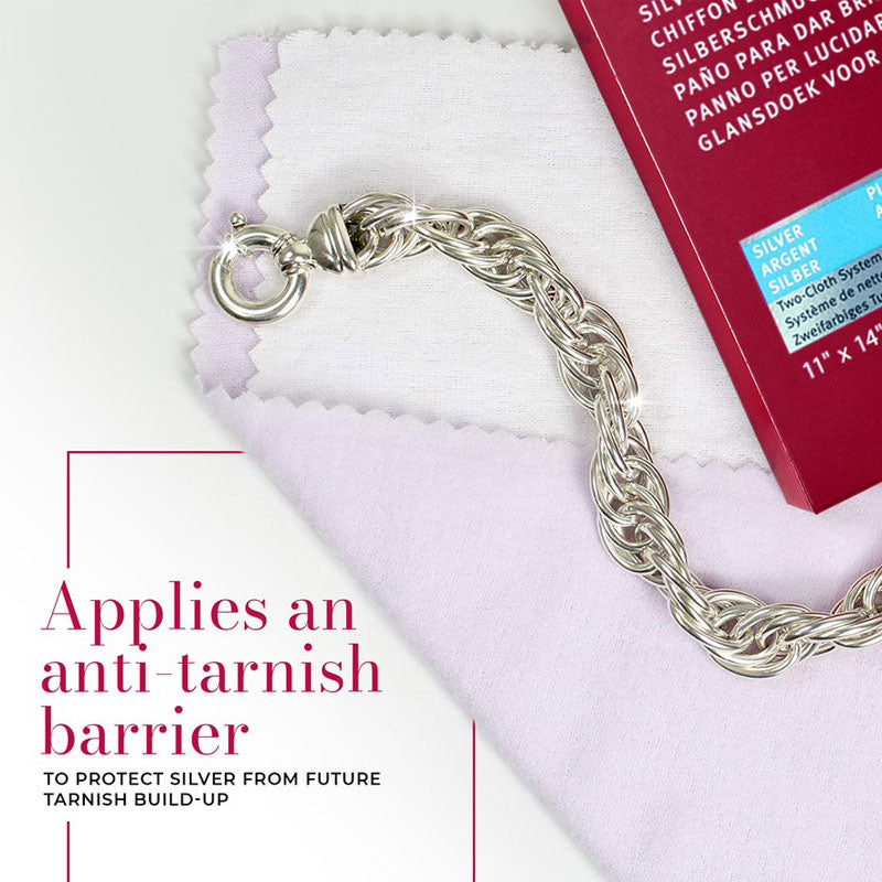 To clean silver jewellery, use Connoisseurs UltraSoft® Silver Jewellery Polishing Cloth.
